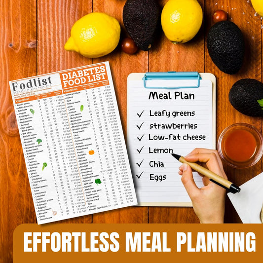 Diabetes-Friendly Grocery Shopping List: Calorie, Carb, and Glycemic Index Count for Blood Sugar Control - Pamphlet, Laminated