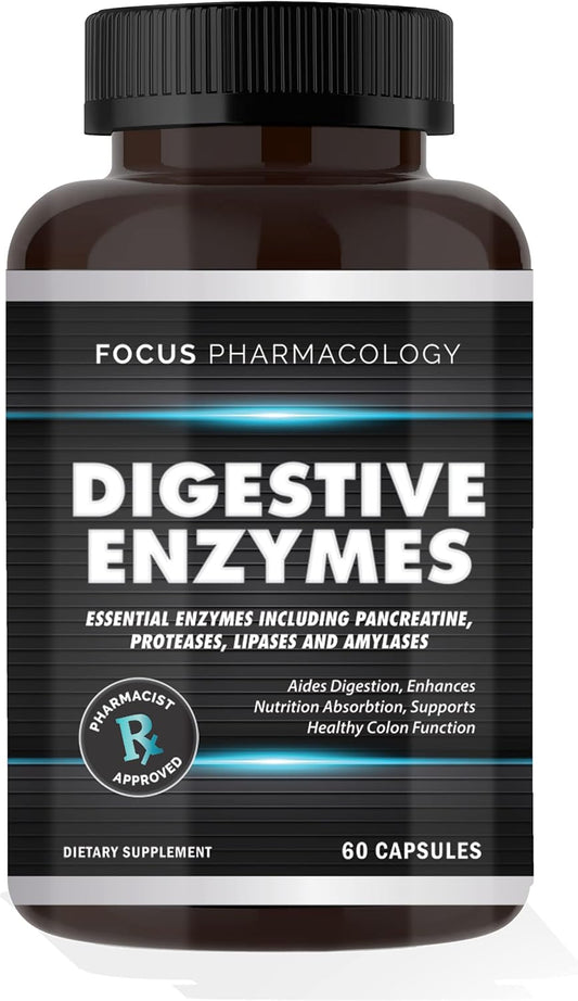 Digestive Enzymes Supplement for Gut Support & Gas Relief - Full-Spectrum Formula with Gluten, Fats, Carbs & Lactose Digestion - 60 Capsules