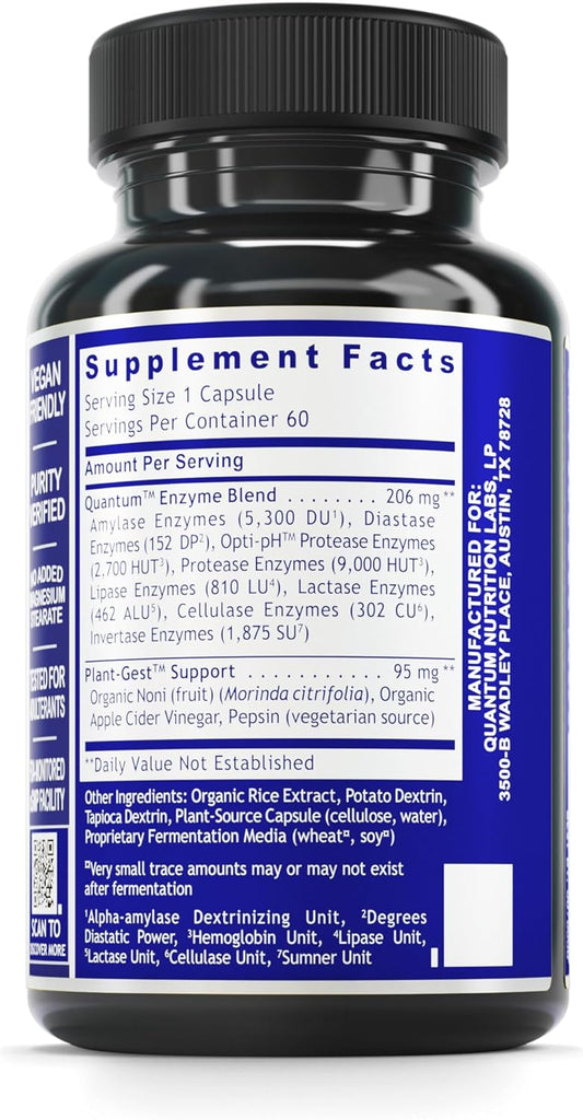 Digestive Enzymes for Gut Health - Quantum Nutrition Labs Quantum Digest Supplement for Men and Women - Vegan Capsules for Digestion Support