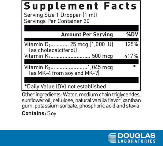 Douglas Laboratories Liquid Vitamin D & K Complex for Bone Health - 1 fl. oz. Vanilla Flavor