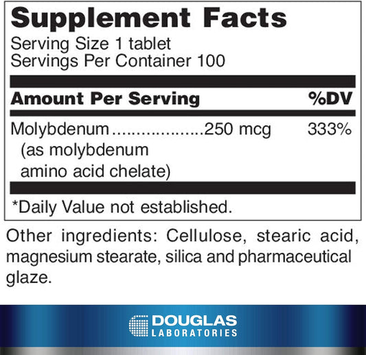 Douglas Laboratories Molybdenum 250 mcg 100 Tablets - Supports Detox, Enzymes, Nerves