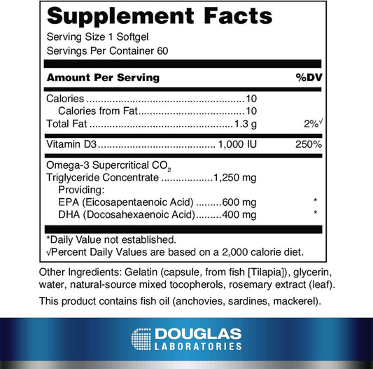 Douglas Laboratories Quell Fish Oil EPA/DHA Plus D | Omega-3 Fatty Acids with Vitamin D3 | 60 Softgels