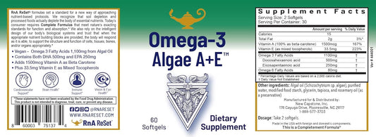 Dr. Carolyn Dean's Omega-3 Algae A+E Plant Based DHA & EPA Fatty Acids - Vegan Alternative to Fish Oil - Supports Heart, Brain, Joint Health - with Vitamin A and E