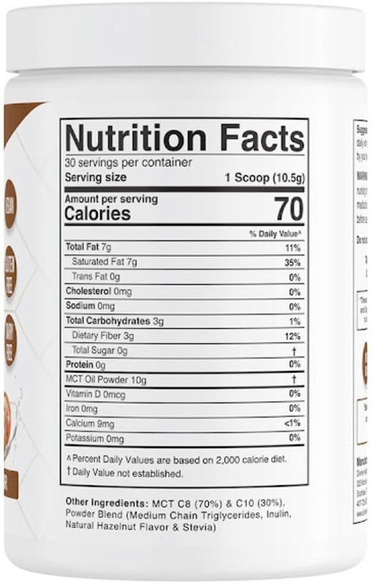 Dr. Colbert MD Hazelnut MCT Oil Powder | Keto Zone Diet Book Recommended | 70% C8 30% C10 | 0 Net Carbs | Coffee Creamer Alternative
