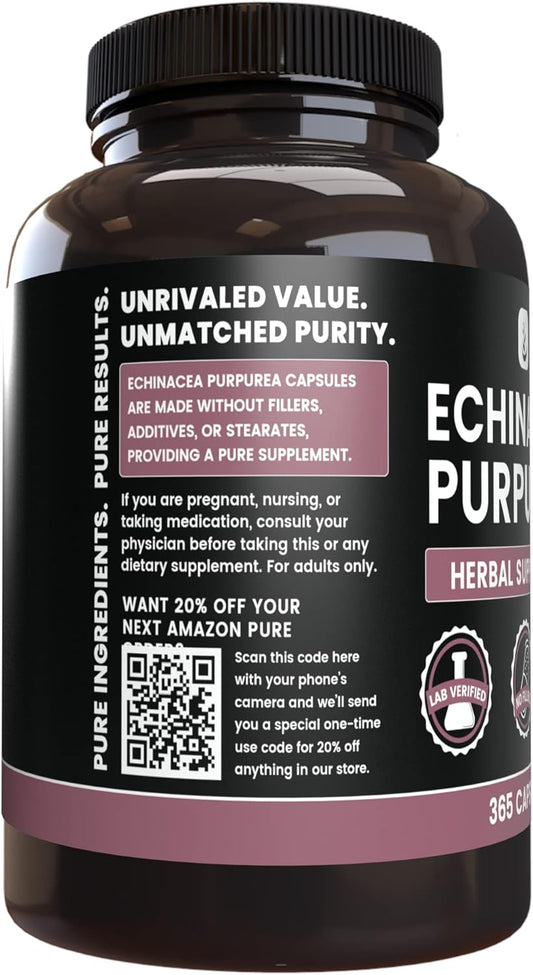 Echinacea Purpurea Capsules - 365 Count, No Magnesium or Rice Fillers, Lab Verified & Pure Ingredients