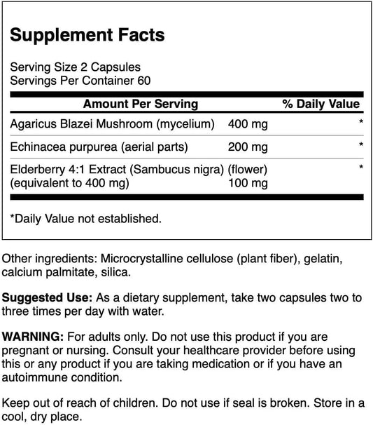 Elderberry Agaricus Echinacea Immune Support Formula Capsules 400mg Elderberry, 400mg Agaricus Blazei, 200mg Echinacea 120ct