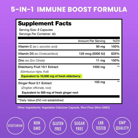 Elderberry Gummies 100mg with Vitamin C, Zinc - Immune Support, Gluten-Free - 60 Count