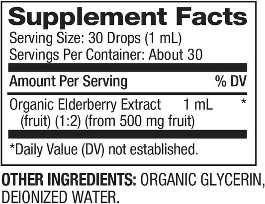 Elderberry Liquid Drops Herbal Supplement by BareOrganics - 1 Ounce