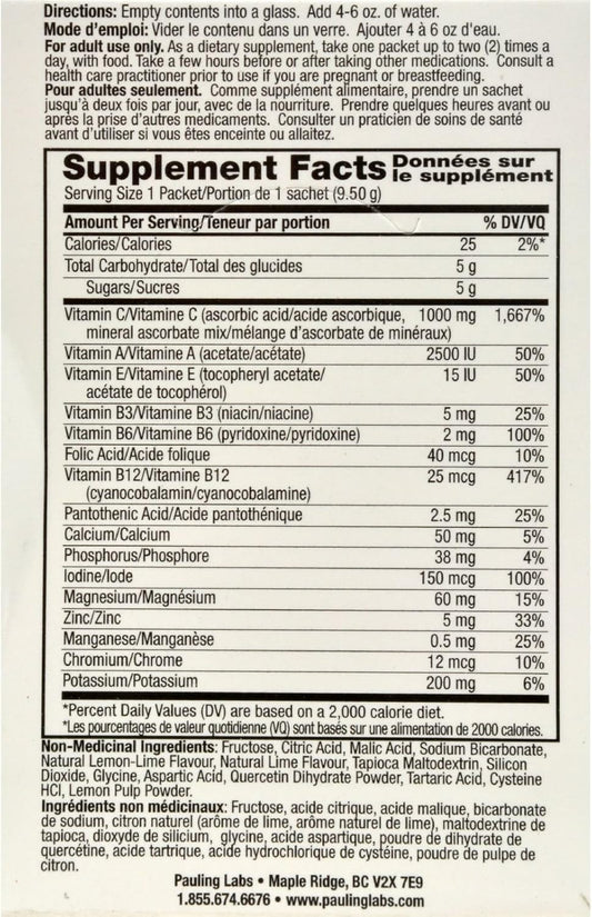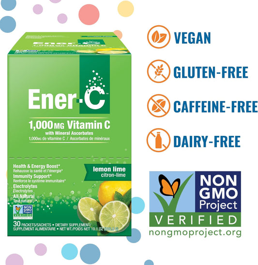 Ener-C Lemon Lime Multivitamin Drink Mix Powder with 1000mg Vitamin C & Electrolytes - Natural Energy & Immune Support - Non-GMO Vegan & Gluten Free - 60 Packets