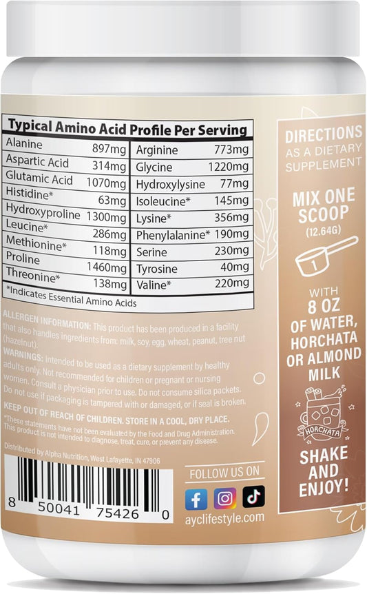 Energy Collagen Powder with Caffeine, Vitamin C, Biotin & Hyaluronic Acid for Hair, Skin & Nails - 8.92 oz (Horchata)