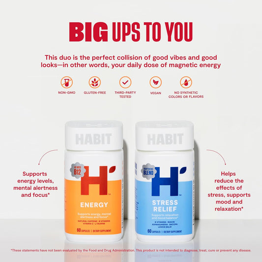 Energy & Stress Relief Mood Bundle - 60 Capsules Each. Boost Alertness & Focus, Promote Relaxation & Mood Balance. Vegan & Non-GMO.