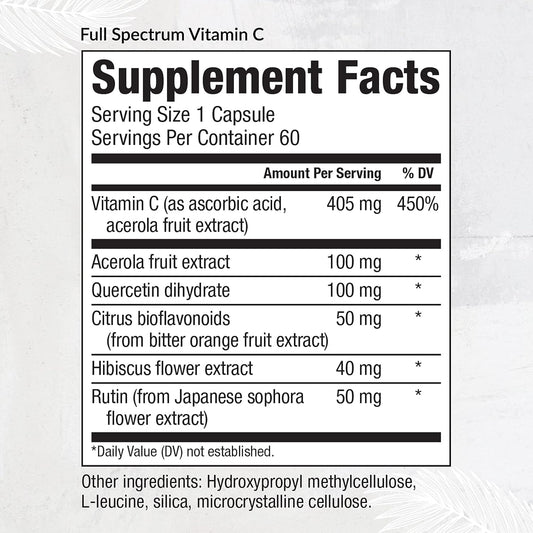 Equilife Full Spectrum Vitamin C Capsules - Immune Support & Antioxidant Supplement for Skin Moisture & Irritation Relief (60 Count)