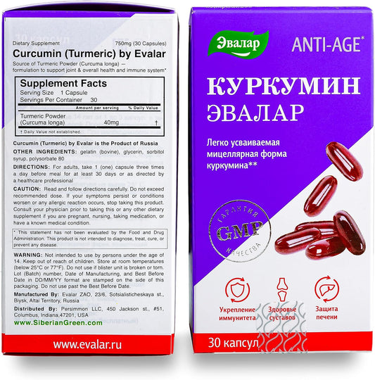 Evalar Curcumin Supplement - 30 Capsules for Joint Health and Inflammation Support
