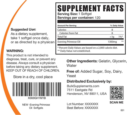 Evening Primrose 1300mg Softgels - Omega 6 & Gamma Linoleic Acid Supplement - 120 Softgels - Pack of 1