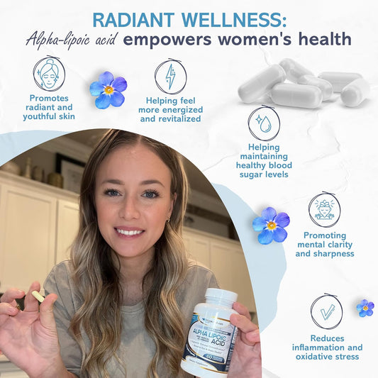 Extra Strength Alpha Lipoic Acid 600mg Capsules for Nerve Pain, Skin, Face, Eye, Brain Boost - Pure Vegetarian Supplement - Supports Natural Detox - Non-GMO