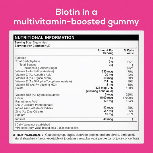 Extra Strength Biotin Gummies for Hair, Skin, Nails Growth - 5100 mcg - Men & Women - 60 Gummies