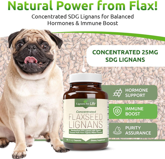 Flaxseed Lignans Supplement Capsules - Omega 3 Fatty Acids, Fiber & Antioxidants for Shiny Coat, Digestive & Heart Health - 25mg, 90ct, 1-Pack