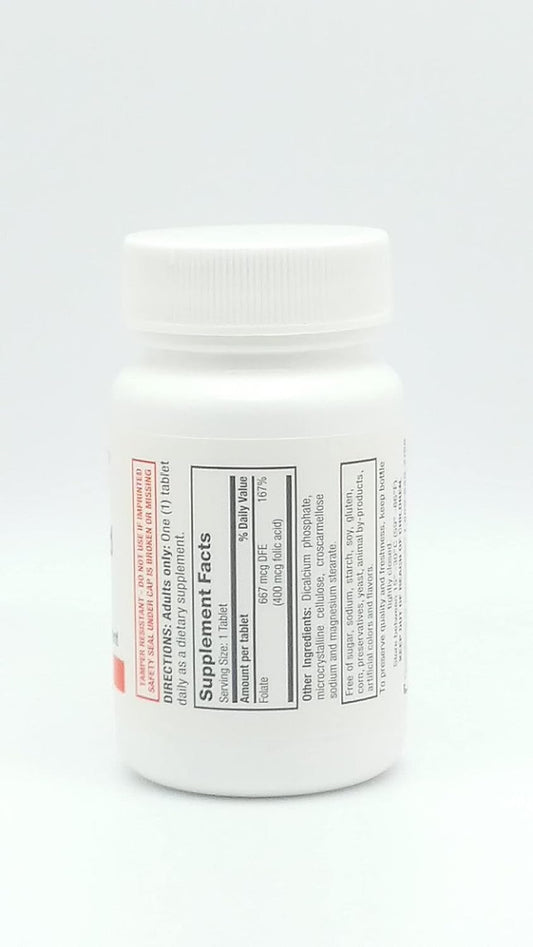 Folic Acid 400mcg Supplement for Healthy Fetal Development - Vegetarian Formula - 100 Count
