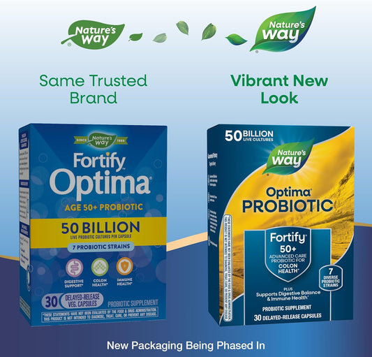 Fortify Optima Probiotic for Adults 50+: 50 Billion Live Cultures, Digestive & Immune Health, No Refrigeration, 30 Capsules