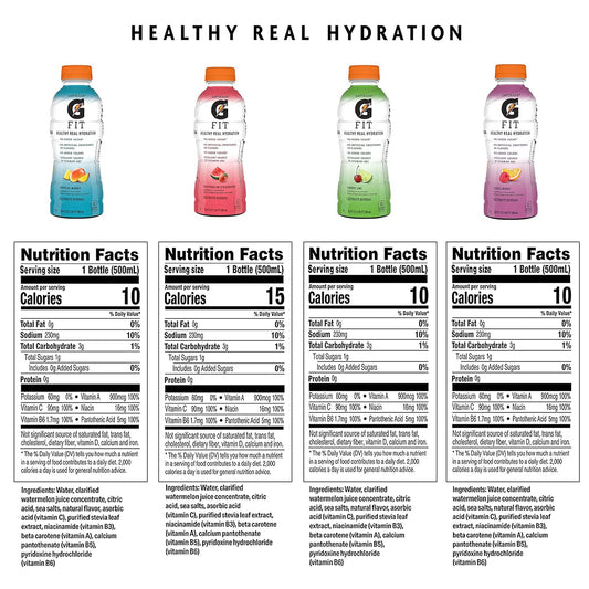 Gatorade Fit Electrolyte Beverage Variety Pack, Real Hydration, 16.9 fl oz Bottles - Pack of 12