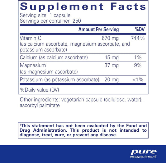 Gentle Buffered Vitamin C Capsules for Sensitive Individuals | 250 Capsules | Pure Encapsulations