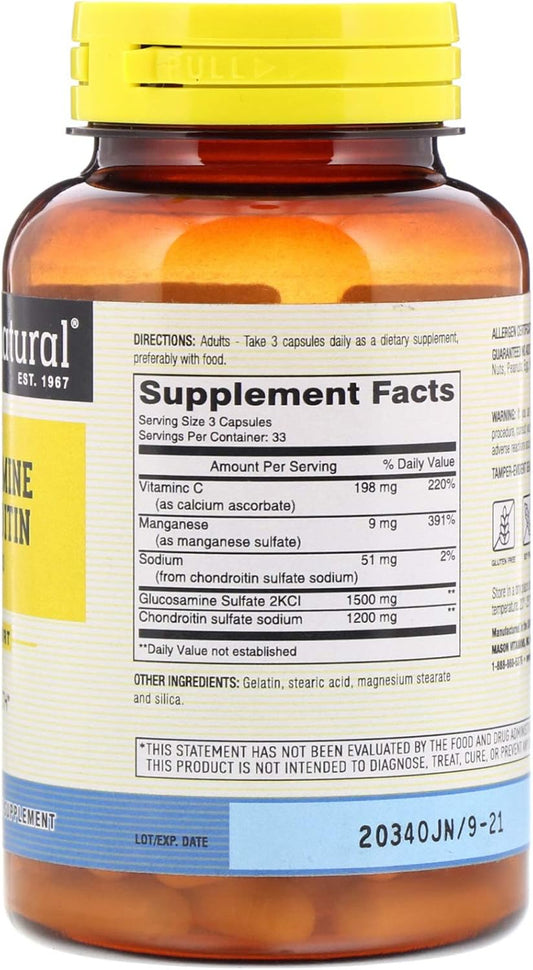 Glucosamine and Chondroitin Capsules - 100 Count, Maximum Strength 1500 mg by Mason Natural