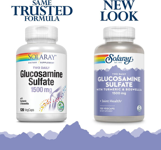 Glucosamine Sulfate 1500mg Joint Support Supplement with Turmeric & Boswellia - 120 VegCaps, 60 Servings, Money Back Guarantee