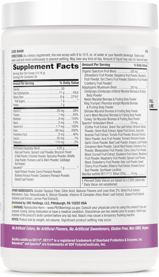 GNC Vital Greens Powder: Probiotics & Fiber for Gut Health | Berry Flavor | Gluten Free, Vegan Formula | 30 Servings