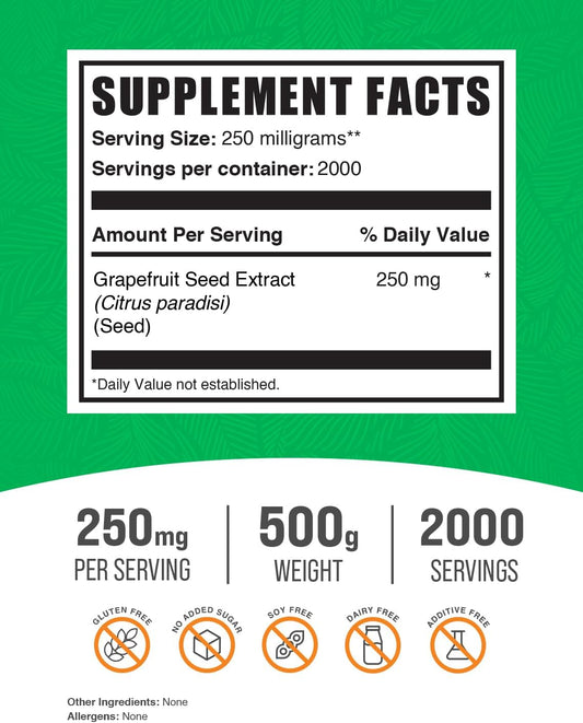 Grapefruit Seed Extract Powder - Antioxidant Source, Herbal Supplement - Gluten Free, 250mg per Serving - 500g (1.1 lbs) Pack of 1