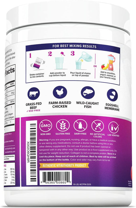 Grass Fed Multi Collagen Peptides Powder with Hyaluronic Acid and Vitamin C for Hair, Skin, and Nails - Instant Dissolving Drink Mix for Men and Women