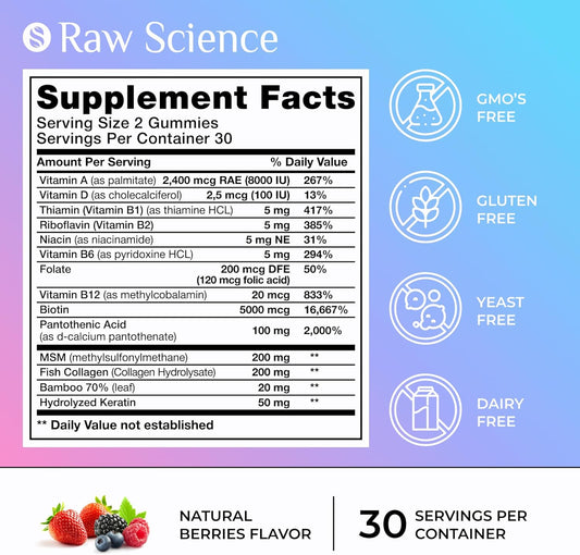 Hair Skin and Nails Gummies with Biotin 2500 mcg for Healthy Hair, Skin & Nails - 90 Gummies