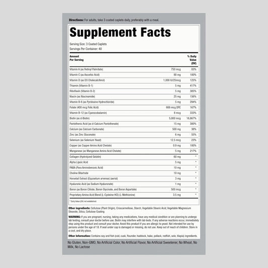 Hair Skin and Nails Vitamins with Collagen - 120 Caplet Pills, 5000 mcg Biotin - Non-GMO, Gluten Free Supplement