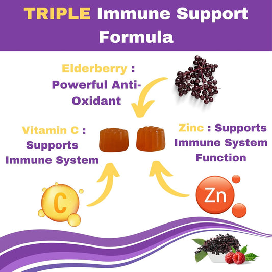 Halal Immune Support Elderberry Gummies for Kids - Natural Zinc and Vitamin C - 60 Delicious Halal Gummy Vitamins for Children