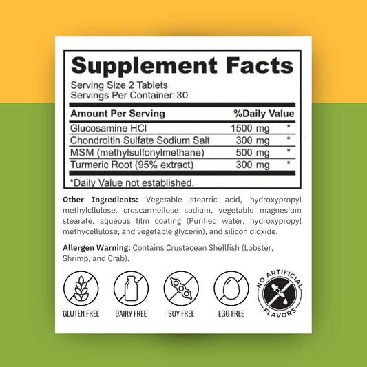 Halal Ultra Joint Vitamins with Glucosamine, Chondroitin, MSM, Turmeric, Collagen, Vitamin C, Manganese - 60 Tablets