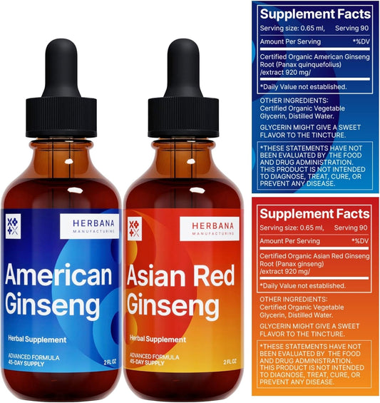 Herbana Manufacturing Ginseng Liquid Extract Duo for Energy, Focus, and Immune Support - Panax Ginseng Tincture Pack