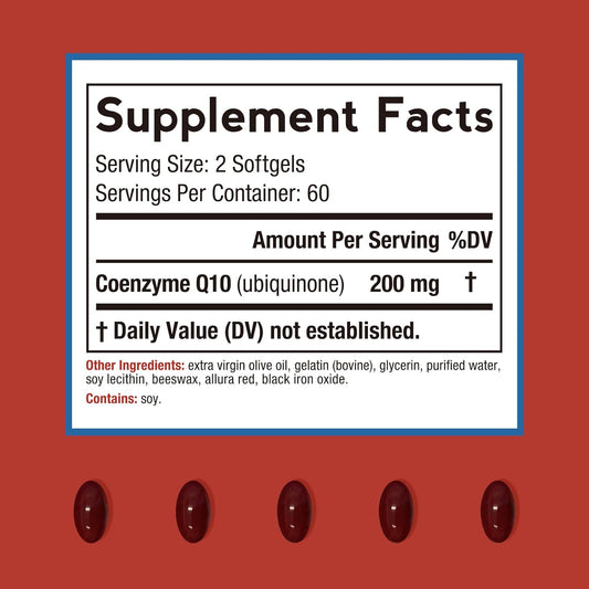 High Absorption CoQ10 Supplement with Olive Oil for Heart Health - 200mg, 120 Softgels