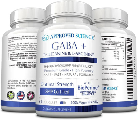 High Absorption GABA+ Supplement for Calm, Sleep, and Mood - With L-Theanine, L-Arginine, Vitamin B6, BioPerine - Vegan - 60 Capsules