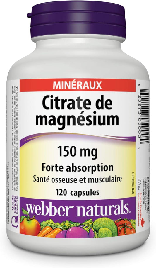 High Absorption Magnesium Citrates Supplement 150 mg - 120 Capsules by Webber Naturals