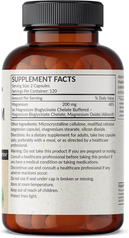 High Absorption Magnesium Glycinate 200 MG per Serving, Chelated for Gentle Stomach, Non-GMO | 240 Vegetarian Capsules by Futurebiotics
