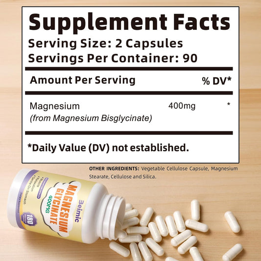 High Absorption Magnesium Glycinate Capsules - 400 MG per Serving, Gentle on Stomach, Non-GMO, 180 Vegetarian Capsules