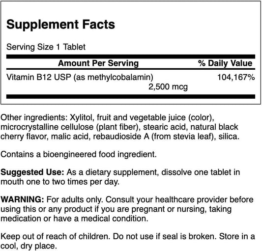 High Absorption Methylcobalamin Vitamin B-12 2.5mg Tablets by Swanson - 60 Count