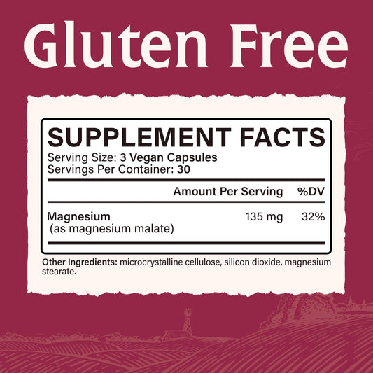 High Absorption Magnesium Malate Capsules for Muscle Relaxation & Energy Production - 45mg Elemental Magnesium - Easy-to-Swallow, Gluten-Free, Vegan - 90 Count