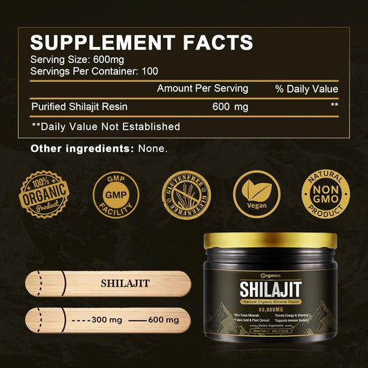 High Potency 600mg Pure Siberian Organic Shilajit Resin for Energy, Strength, & Immunity - Men & Women's Supplement