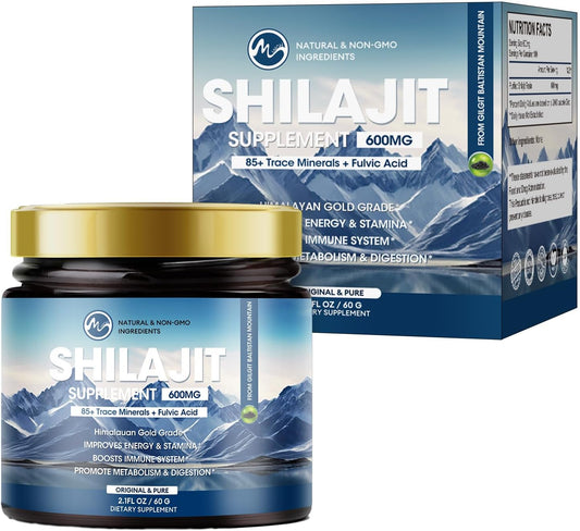 High Potency 600mg Pure Natural Shilajit Resin Supplement for Men & Women - Himalayan Shilajit with 85+ Trace Minerals & Fulvic Acid - Energy, Metabolism & Immune Support - Non-GMO - 60g
