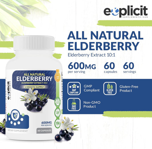 High Potency All Natural Elderberry Supplement for Immune Health - 1200mg Capsules - Made in USA - 60 Day Supply