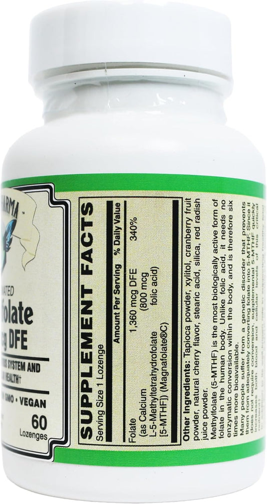 High Potency Coenzymated Methylfolate Lozenges with Magnafolate® - 1360 mcg DFE - AlchePharma