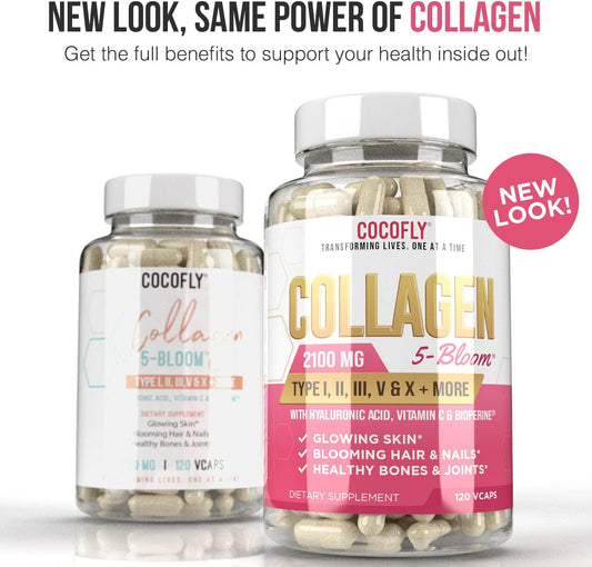 High Potency Collagen Pills for Women - 120 Capsules, 2100mg Hydrolyzed Collagen, Grass Fed Supplements with Hyaluronic Acid, Vitamin C, Bioperine - Anti-Aging Support for Skin and Hair