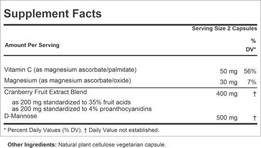 High Potency Cranberry with D-Mannose Capsules for Bladder & Kidney Health