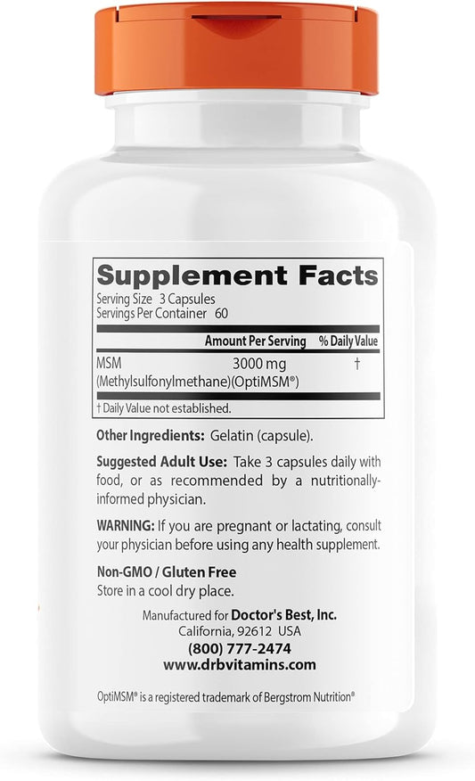 High Potency MSM Supplement for Hair, Skin, Nails, and Joints - Non-GMO, Gluten Free - 180 Capsules, 3000mg Per Serving