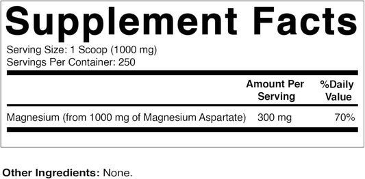 High Potency Vitamatic Magnesium Aspartate Powder for Muscle, Joint, and Heart Health - 1000mg per Serving - 250 Servings